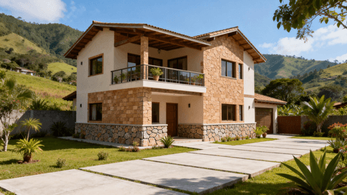 文化石基座和皮纹砖外墙营造温馨的居住氛围
